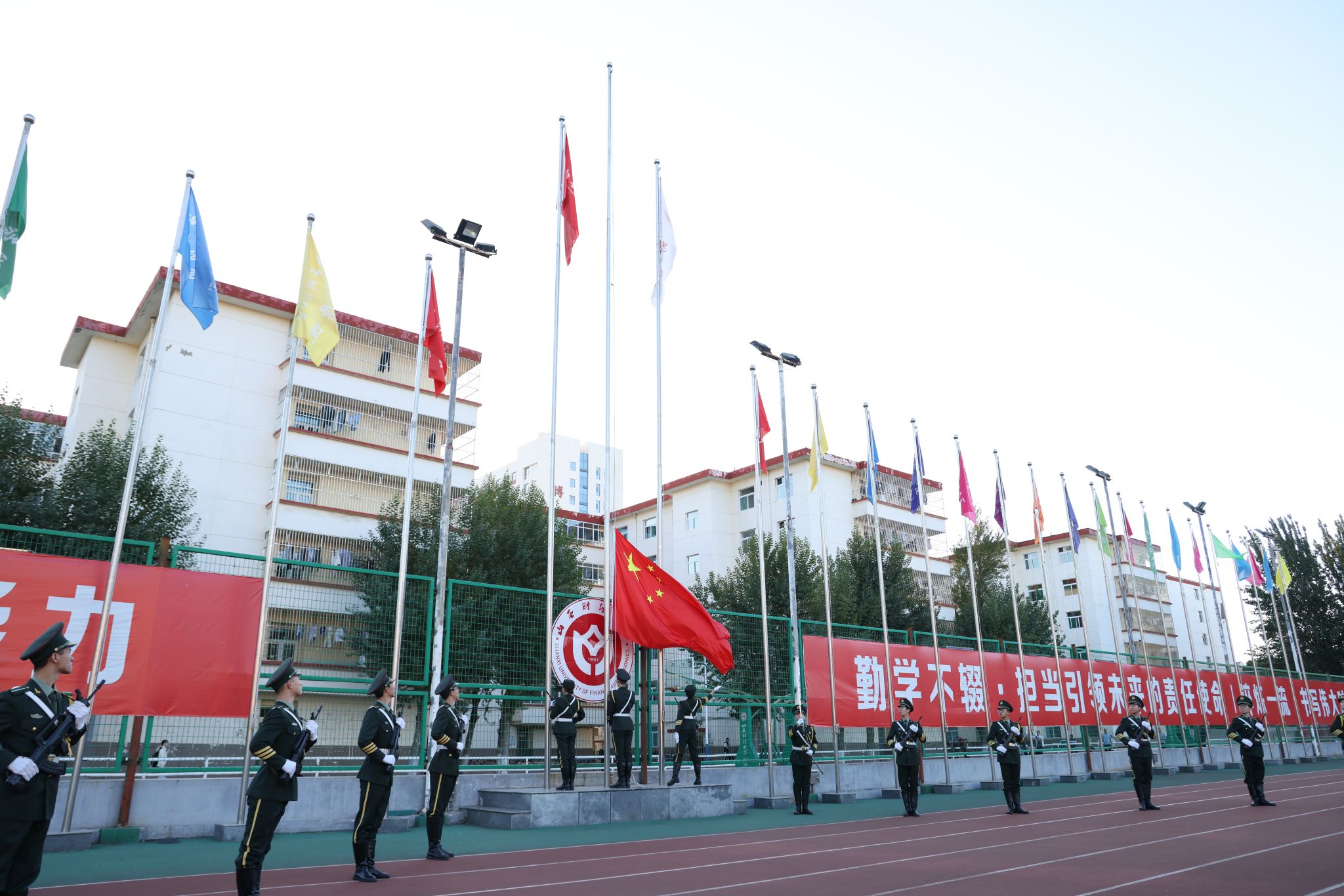 10月9日清晨,best365官方网站登录入口在坞城路校区体育场举行了庄严的升旗仪式,学院全体领导、教职员工和所有在校学生共同参加了升旗仪式。