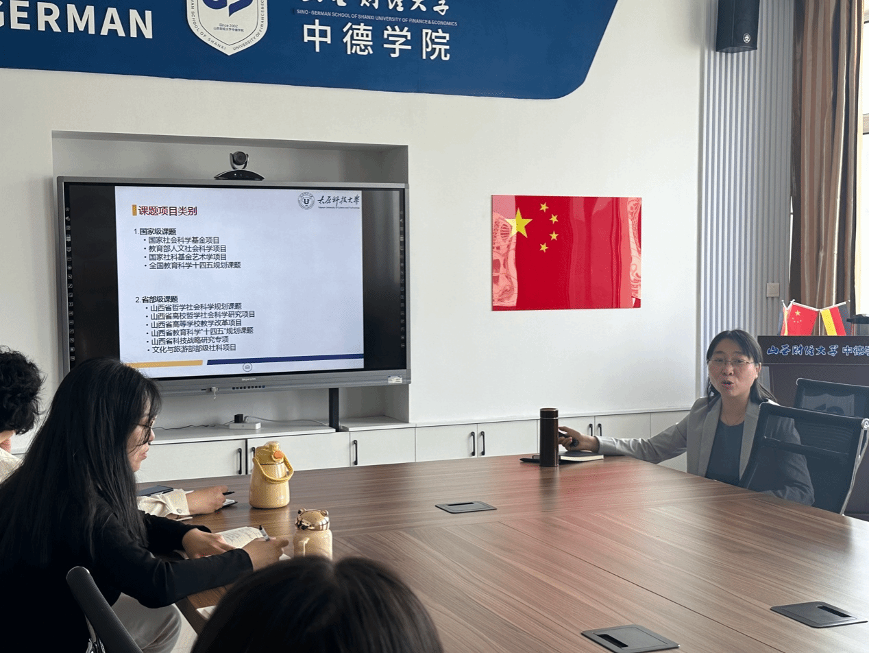 为深化教改项目内涵,提升教育教学改革质效,促进学院德语教学改革工作,探索德语教学新理念,4月22日下午,best365官方网站登录入口召开课题申报与德语教学经验分享会。本次经验分享会特别邀请太原科技大学外国语学院副教授张宇为大家进行经验分享与交流。学院副院长陈啸、全体德语老师参加了本次会议。会议由陈啸副院长主持。