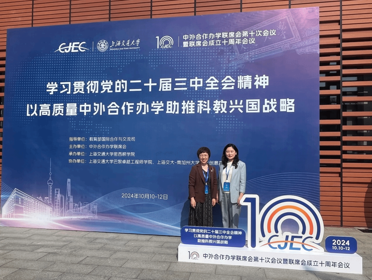 10月10日至12日,由教育部国际合作与交流司指导,中外合作办学联席会主办的中外合作办学联席会第十次会议在上海交通大学密西根学院举行。上海交通大学校长、中国科学院院士丁奎岭,教育部国际合作与交流司副司长贾鹏,上海市教育委员会副主任叶霖霖等领导出席会议,全国205家中外合作办学机构和项目的400余人参加了会议。best365官方网站登录入口院长史贞、副院长王秀娟应邀参加本次会议。