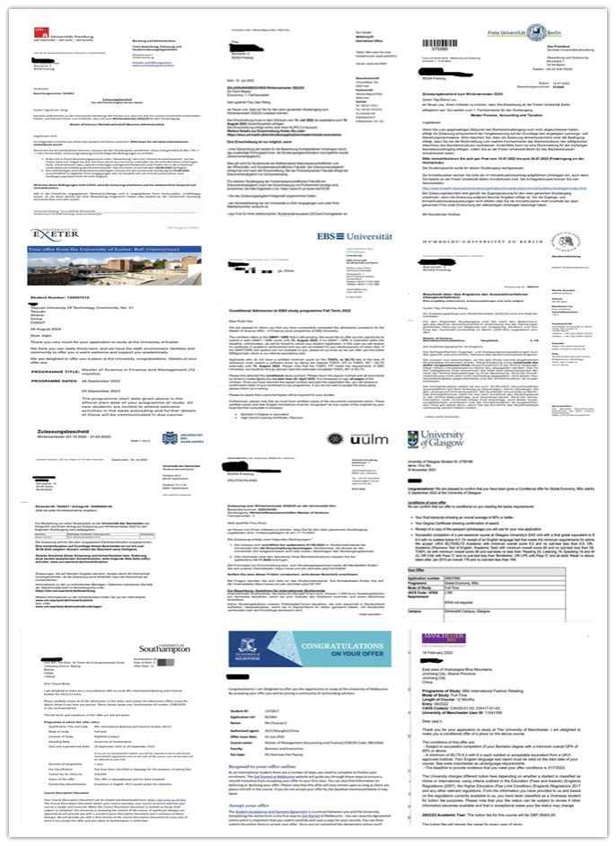 截止目前,2022届毕业生中共有115名同学以优异的成绩分别取得德国柏林洪堡大学、柏林自由大学、科隆大学、汉堡大学、萨尔大学、乌尔姆大学、FOM大学等11所德国高校,南安普顿大学、诺丁汉大学、布里斯托大学、埃克塞特大学、杜伦大学等9所英国高校,荷兰阿姆斯特丹大学、伊斯拉姆斯大学,澳大利亚国立大学及蒙纳士大学,中国澳门科技大学等知名大学的研究生录取通知书,另有1名优秀毕业生推免到中国西北大学,毕业生考研率达到57.5%。其中录取到QS世界大学排名前200高校的共31人,THE世界大学排名前200高校的有64人,US.NEWS世界大学排名前100高校的有24人,德国精英大学的有36人,研究生录取学校层次、学校数量及录取率再创新高。
