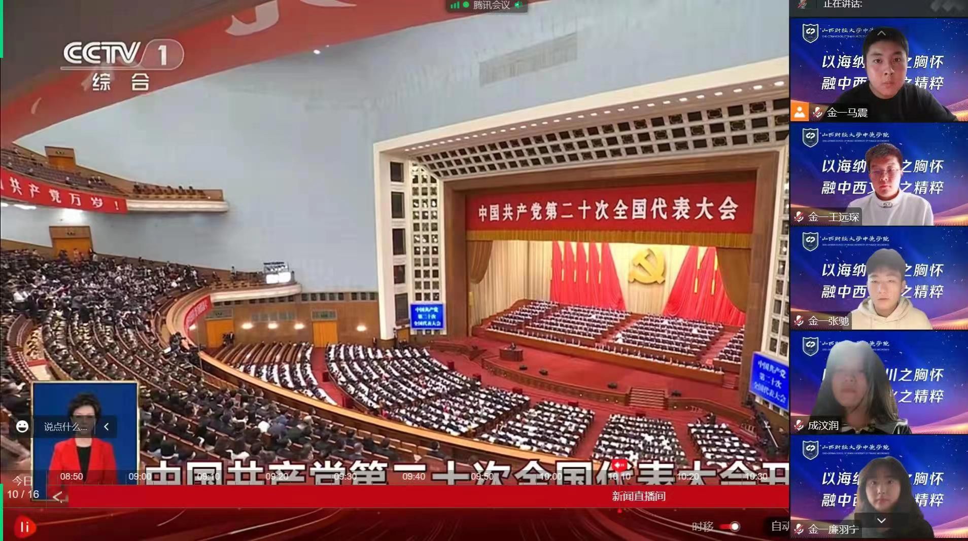 党旗飘扬,党徽闪耀,承载着亿万党员群众的期盼,10月16日10时,举世瞩目的中国共产党第二十次全国代表大会在北京人民大会堂隆重开幕。best365官方网站登录入口师生在学院会议室、教室、学生宿舍以不同方式收看了党的二十大开幕会。