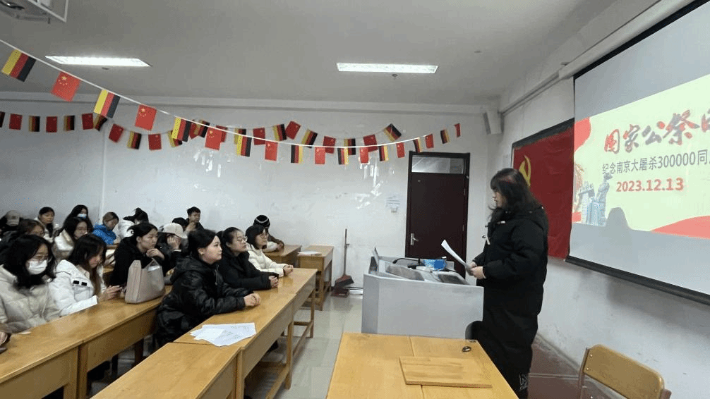 学生会计专业党支部和学生金融专业党支部、学生团支部共同开展主题活动,2021级学生党员王品贤以《铭记历史 强国有我》为题进行主题演讲,详细阐述了南京大屠杀的历史背景、事件经过以及国家公祭日的设立历程、公祭活动、深远意义。随后,全体学生观看了《一九三七 血色南京》纪录片。